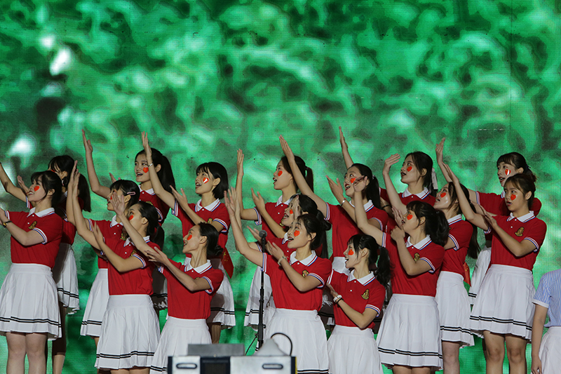 圣井校区各学院奉献了脍炙人口的经典合唱曲目,唱出了财大青年学子砥砺奋进的青春力量。《今天是你的生日,我的祖国》《祖国不会忘记》《我的中国心》《少年中国》《天耀中华》等歌曲表达了对祖国70岁华诞的殷殷祝福。《青春,我喜欢你》《中国人,中国心》《点亮未来》《我们都是追梦人》《在灿烂阳光下》唤醒了同学们的青春激情和理想。《不忘初心》《我爱你中国》《大中国》《歌唱祖国》…一首首熟悉的旋律,诠释着财大青年牢记青春使命的坚定信念。