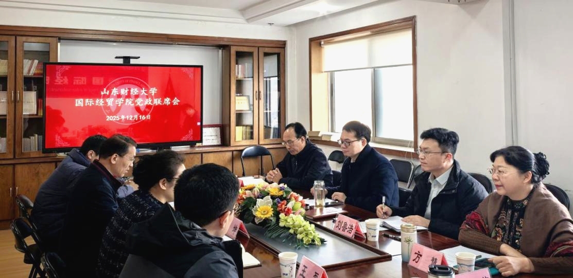 12月16日上午,校长洪俊杰到国际经贸学院指导党政联席会,并调研学院发展建设情况。国际经贸学院全体班子成员参加会议。