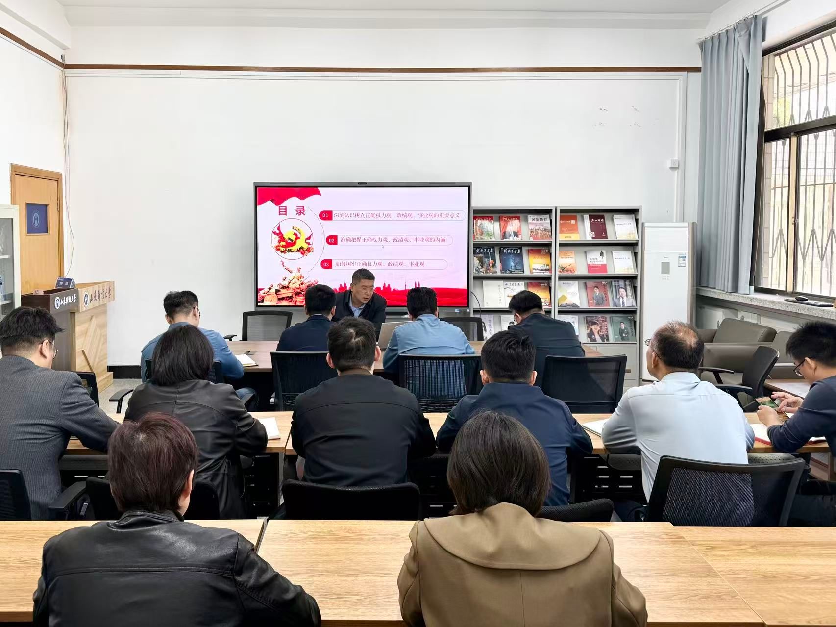 为深入学习贯彻党的二十届四中全会精神,引导全体党员牢固树立和践行正确权力观、政绩观、事业观,4月20日下午,副校长刘旻航以“筑牢正确权力观政绩观事业观,在新征程中彰显党员干部价值追求”为题,为学生工作部、团委全体党员讲授专题党课。