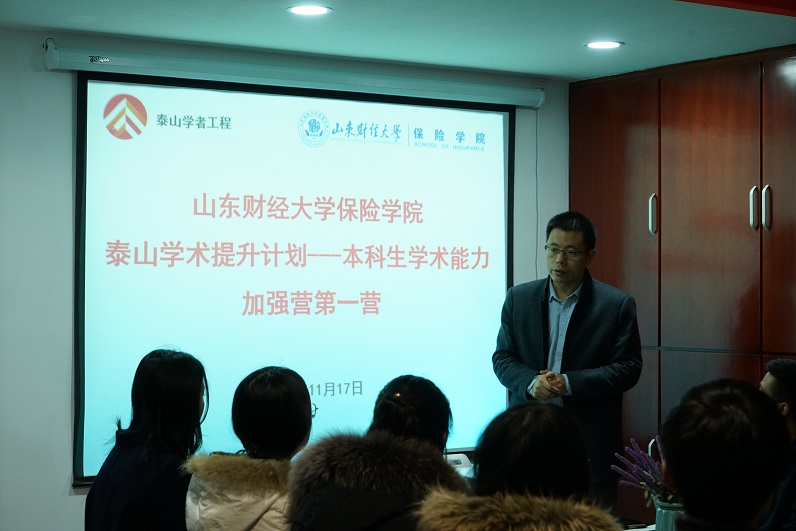 为深入贯彻落实全国教育大会精神,紧紧围绕全面提高人才培养能力的核心点,加快形成高水平人才培养体系,山东财经大学保险学院在本科人才培养方面积极推动研究性教学,为提高学生的科研和论文创作能力,11月17日,学院副院长、山东省青年泰山学者于文广教授在泰山学者工作室为2016级的13名营员举行了首期“泰山学术提升计划——本科生学术能力加强营第一营”的开班仪式。