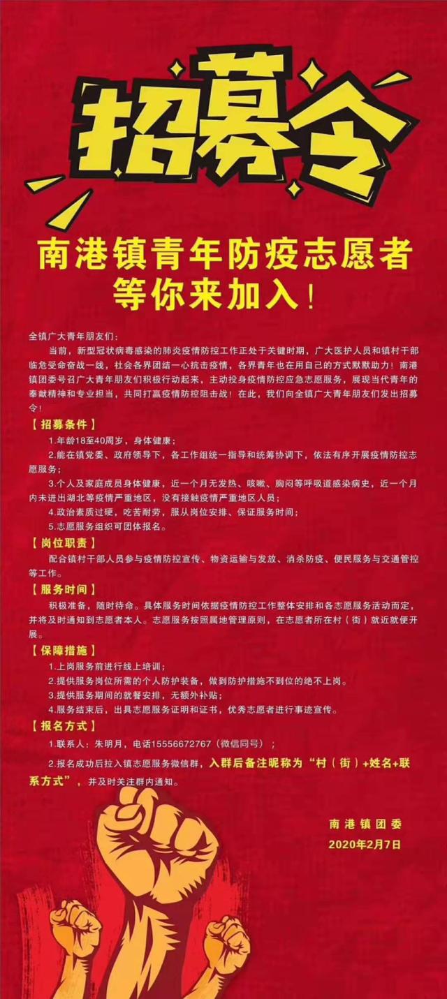 疫情肆虐,牵动着千家万户的心,更加重了防控工作,亟需更多爱心人士投身到这场“疫情保卫战”中来。钱路同学获悉南港镇团委向广大青年发出争做志愿者的号召后,就自告奋勇,踊跃报名,满怀热忱地加入疫情防控应急志愿服务团队,展现了当代青年的奉献和担当精神,为打赢疫情防控阻击战,贡献一份光和热。