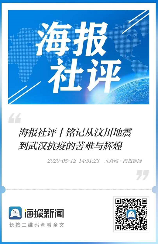 时间作证:无论是汶川地震还是抗击疫情,无论是2008年还是2020年,全体中国人民的不屈奋斗终将写入史册,中华民族精神力量的空前大提升终将标注成珍贵的民族记忆,熔铸为民族伟大复兴的巍峨里程碑。因为这一精神,可歌可泣、可圈可点,无坚不摧、无往不胜。