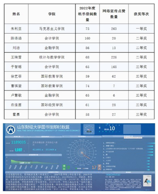 在激励学生阅读方面,学校以全体在校生为评选对象,根据纸书借阅数量、学习成绩、综合表现、网络宣传等因素综合评选了10名2022年度“借阅之星”;图书馆还实时做借阅率高的图书排行榜等,吸引更多学生参与阅读,推动书香校园建设。