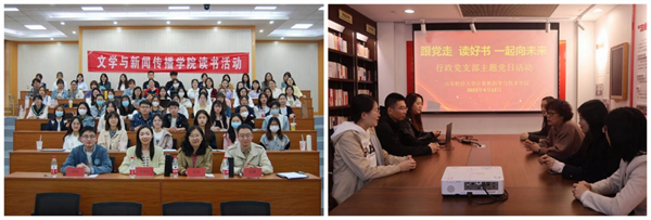 文学与新闻传播学院举办“学习二十大,书香溢砚台”读书活动线下展示,20个参赛队伍的选手围绕中国共产党的百年奋斗征程,通过PPT分享阅读感悟,解读红色书目中革命先烈的奋战足迹,抒发青年大学生对党和国家的赤热情怀。计算机科学与技术学院开展“跟党走,读好书,一起向未来”主题党日活动。国际教育学院青年志愿者协会在泉城书房开展志愿服务,推动“书香泉城”建设。