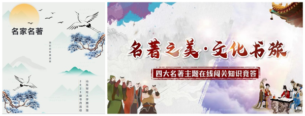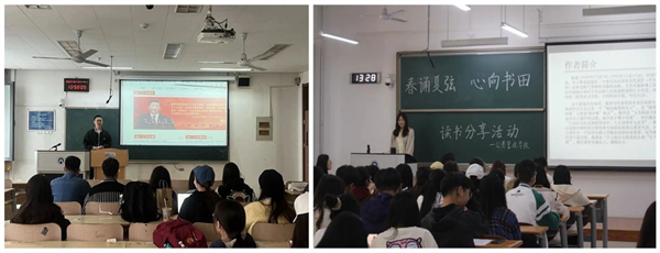 学校公众号推送《今日,我只愿藏于这“黄金屋”》,宣传部等17个单位携手共拟《国富论》《人世间》等书单,法学院、体育学院、艺术学院在学院公众号分享《法治及其本土资源》《人生海海》《时装艺术·设计》等,做好宣传引导。“纵有疾风起,人生不言弃” “人之所以需要理想,犹如水手之需要星星,星星虽不可即,但可指引我们的航程”计算机科学与技术学院在学院公众号分享好书名言摘录。马克思主义学院举办的“中国式现代化的历史脉络和科学内涵”青马书社读书沙龙,吸引了马克思主义学院、法学院、计算机科学与技术学院、统计与数学学院、艺术学院等50余位研究生、本科生参与并发言。学校学生会学术部和文体部联合举办“邂逅经典,畅闻书香”读书月活动,同学们通过悦耳的书声、激昂的文字传递心中之感,与先贤畅谈,和自我对话。