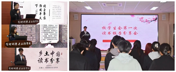 在学校开展的“图书漂流”活动和学校学生会、管理科学与工程学院举办的读书分享会上,大家畅谈读《当下的力量》《有效的管理者》《乡土中国》《文化苦旅》《白鹿原》《人间草木》《人类群星闪耀时》等的感悟,共享阅读乐趣。