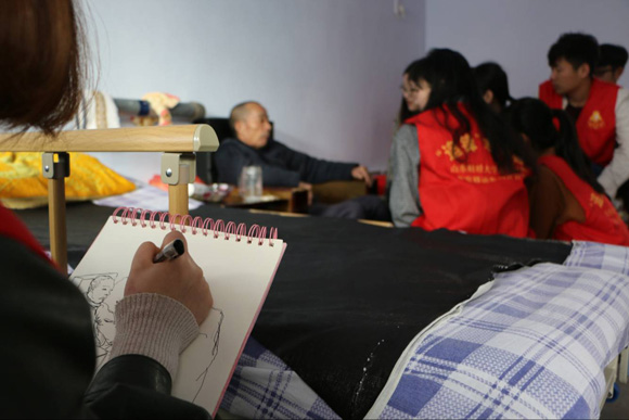 3月25日上午,人文艺术系与徐家楼敬老院对接,组织开展了“青春暖夕阳”雷锋月关爱老人活动。活动中,志愿者们为老人整理内务、修剪指甲,陪老人们拉家常,给老人们带去了快乐。 三号房的杨景泰老人67岁了,住敬老院时已身患脑梗不能自主行走。在与老人聊天的间隙,参加活动的同学发挥专业特长,现场为老人唱歌,为老人作素描,让杨景泰高兴得合不上嘴。