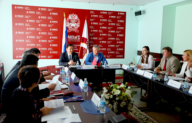 16日,代表团访问了俄罗斯西北管理学院,该校校长沙马霍夫Vladimir Shamkov、副校长Evgeniy Kitin与有关部门、学院负责人参加会谈。双方就科研、科教、创新、咨询、教学及其他事务方面的合作进行了充分交流,商谈了硕士学位项目合作意向,并签署了交换生交流协议。