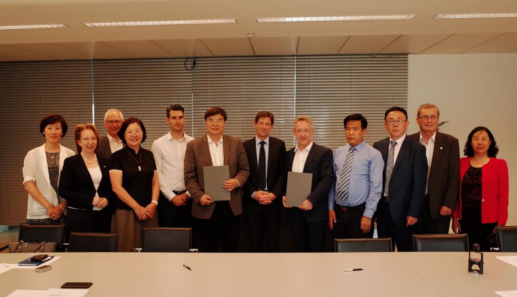 在上奥地利应用科学大学(简称上奥大学),代表团首先参访了上奥大学合作企业卢森宝亚(Rosenbauer)国际有限公司,了解了上奥大学与企业保持长期稳定、密切合作的培养模式和运行机制。赵忠秀表示这种校企合作值得我校学习,就派遣我校MBA学员、本科生参与国际培训和实习的“上奥+财大+企业”三方合作模式进行了探讨。随后,在上奥大学副校长Adreas Zehetner陪同下,代表团前往上奥大学商学院,与商学院院长Robert Fureder、副院长Margarethe Uberwimmer等6人进行会谈。赵忠秀与Zehetner代表两校签署了合作备忘录。双方人员对本科、研究生层次交换生、本硕连读、研究生双学位、国际实习生、MBA学员企业培训、教师交流与互访、联合开展学术研究等达成意向。