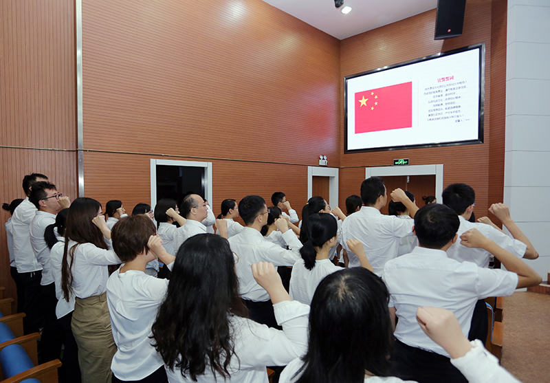 颁奖结束后,在全国优秀教师、国际经贸学院方慧教授领誓下,新入职的30名教师代表全体起立,面向国旗,举起右手,庄严宣誓,志愿成为光荣的山东财经大学教师,忠诚党的教育事业,遵守教育法律法规,为教育发展和民族振兴努力奋斗。