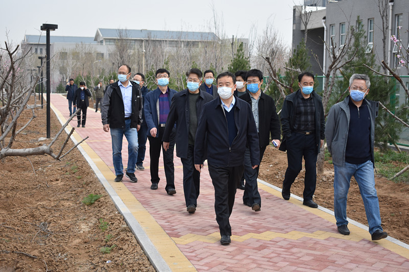 3月24日上午,校党委书记王邵军来到圣井主校区,检查指导疫情防控工作,调度推进主校区项目复工建设。副校长张书学参加检查。