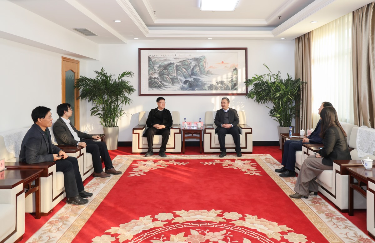 查玉喜代表学校对董军社的到来表示热烈欢迎,并简要介绍了我校的发展历程、办学特色与正在推进的重点工作。他指出,长期以来中国科学院大学对我校人才引育、人才培养、科学研究等工作给予了大力支持,希望双方在现有合作基础上,进一步拓展合作领域、深化合作层次,实现共赢发展。