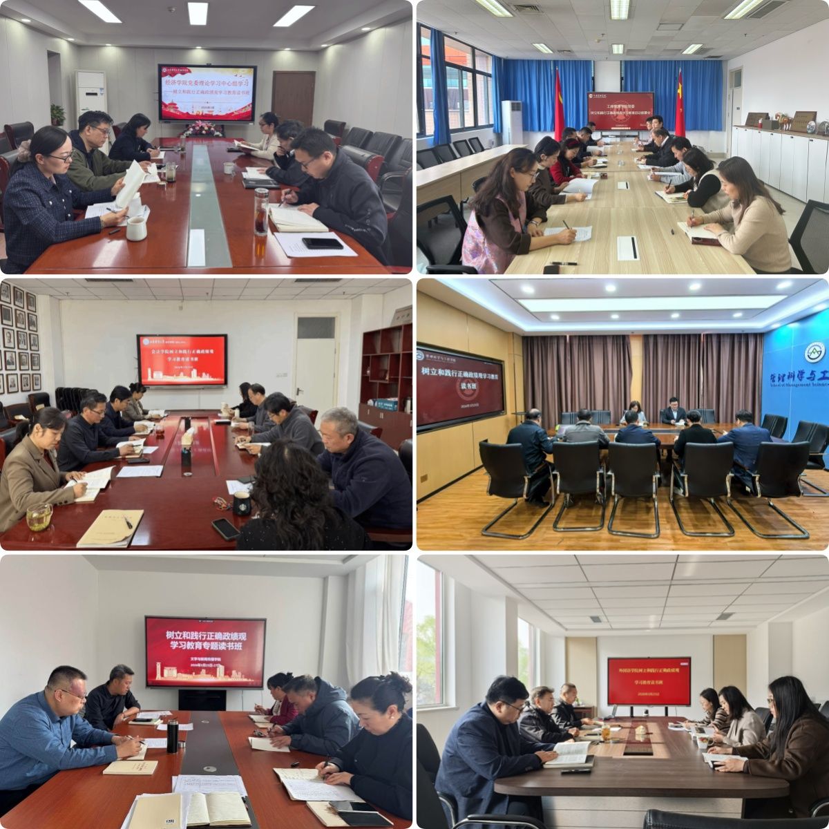 读书班期间,各基层党委、各单位通过党委理论学习中心组、专题党课、“三会一课”等多种形式,深学细悟《习近平关于树立和践行正确政绩观论述摘编》,班子成员带头领学研讨,引导党员干部树牢正确政绩观导向。后勤管理处、经济学院、金融学院、保险学院、管理科学与工程学院、工商管理学院、会计学院、MPA中心、文学与新闻传播学院、统计与数学学院、艺术学院、创新创业教育学院、图书馆、实验教学中心、东方学院等单位按照学校党委统一部署,紧密结合实际,创新学习形式,设定自选动作,营造学习氛围,达到了预期目的。
