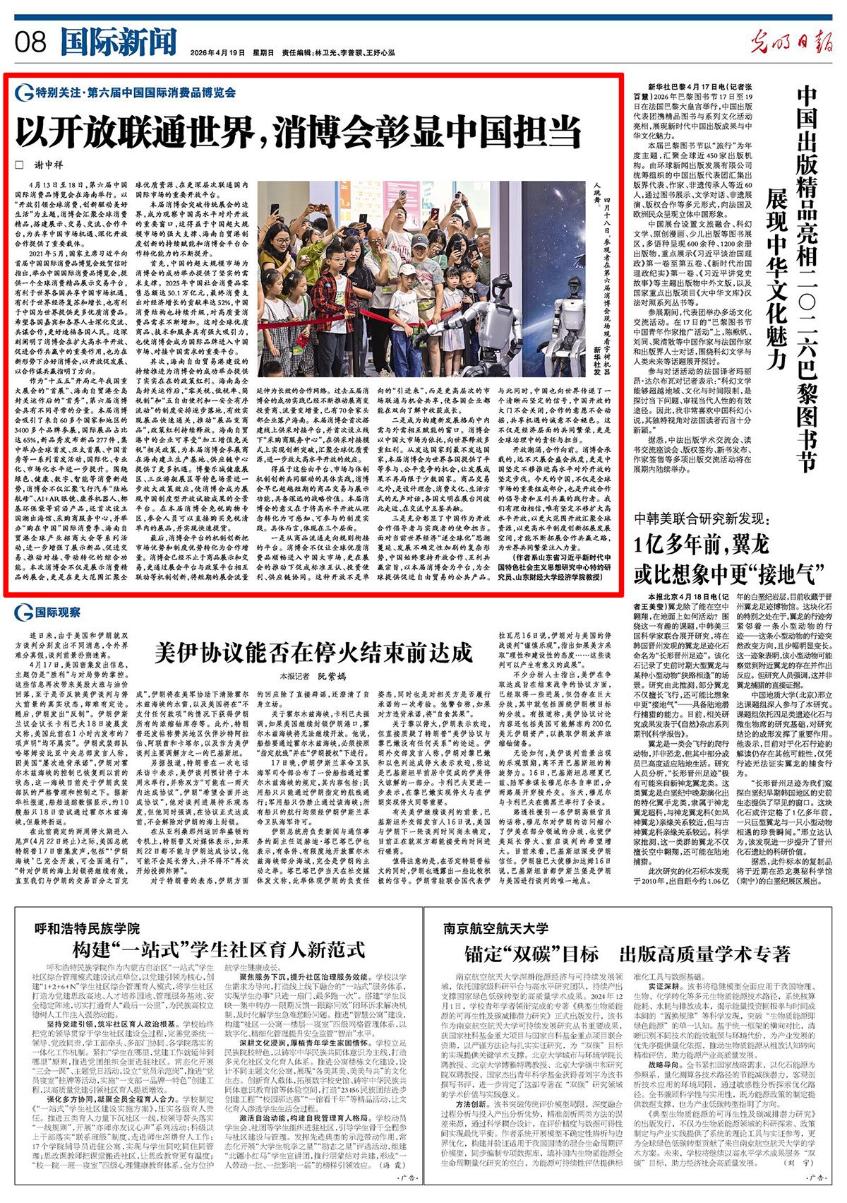 《光明日报》4月19日第八版刊登校党委副书记谢申祥的文章“以开放联通世界,消博会彰显中国担当”,全文如下: