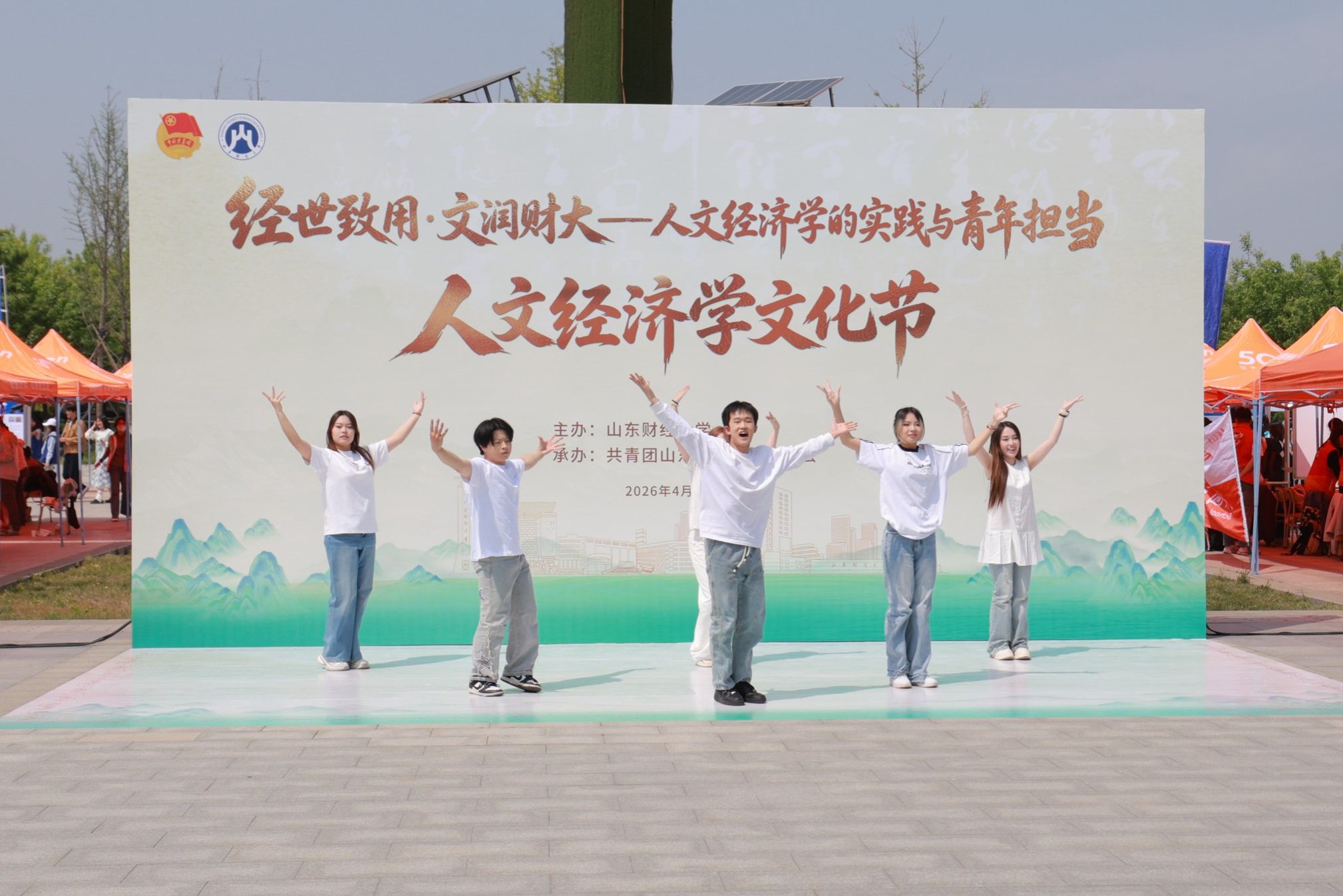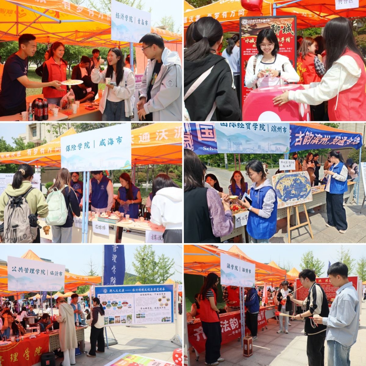 文化节现场亮点纷呈、氛围热烈。在“一院一市”人文经济展区,18个学院深入挖掘山东16地市人文经济资源,将财经专业知识与地方特色人文深度融合,以多样形式生动展现校地共建、双向赋能。
