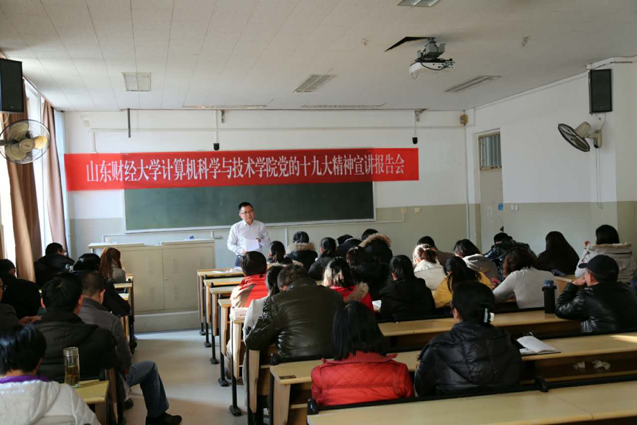 11月30日下午,计算机科学与技术学院党的十九大精神宣讲报告会在燕山校区一号教学楼1405教室成功举办。本次宣讲报告会由学院党委书记邵文涛担任主讲人,学院全体教师和学生党员参加了本次会议。