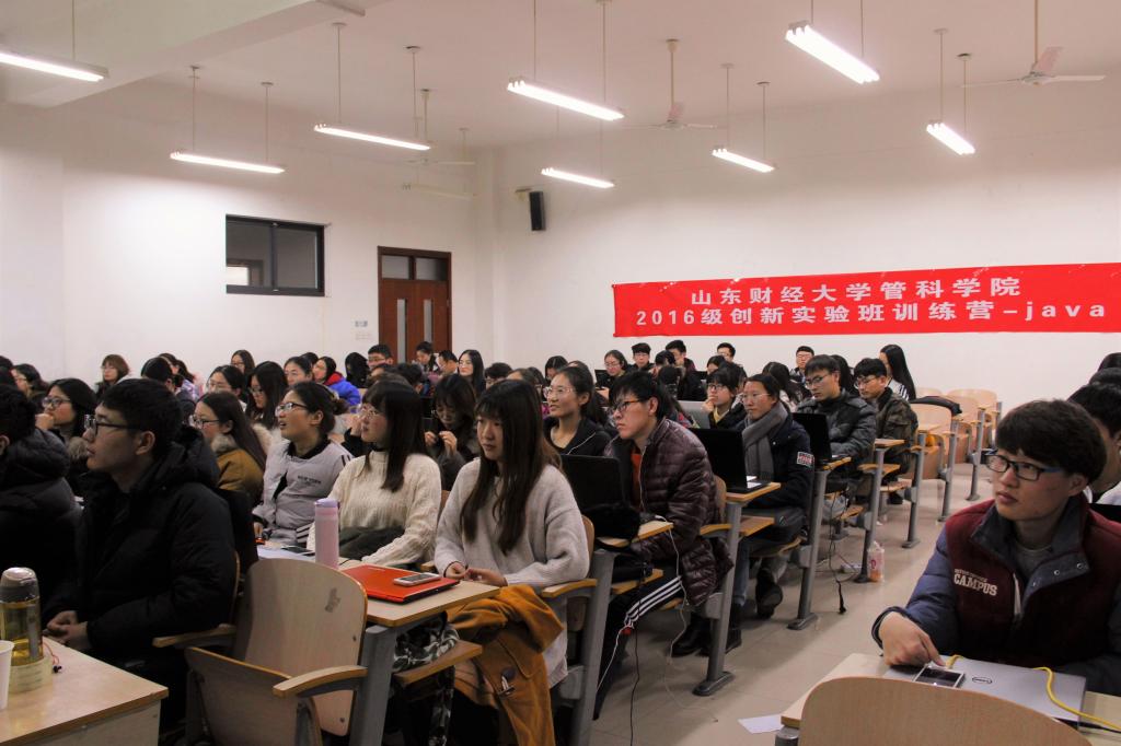 12月9日,管理科学与工程学院2016级创新实验班(JAVA方向)和2017级创新实验班(C语言方向)开班仪式分别于明水校区4301和1106教室开展。管科学院2002级校友、北京华清集团济南分公司总经理李鹏担任主讲,2016级相关专业学生和2017级信息管理与信息系统专业的学生到场聆听。