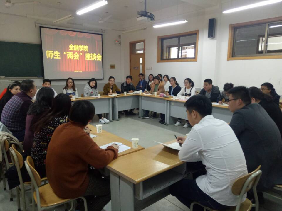 3月23日下午14:30,金融学院于舜耕校区1号教学楼207教室召开师生“两会”座谈会。院党委书记吴红文,教师代表马建春教授,院学工部主任兼团委书记彭艳红,辅导员许静、郭夕熙、庄爱华以及研究生支部书记代表、本科生支部书记代表,党员代表、学生代表共21人参加了会议。座谈会由吴红文主持。