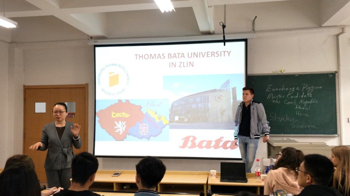 讲座开始之初,刘新英教授邀请三位捷克友人为同学们介绍了自己的大学、捷克的风土人情以及自己在中国留学的经历和感受,并推荐了我校与捷克部分大学的合作交流项目。