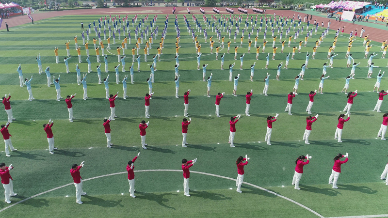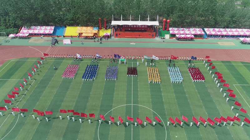 开幕式上,表演了大型团体操。葱绿的草坪跳动着青春灵动的舞姿。同学们像矫健的小鹿,像展翅的雏鹰,整齐划一的杯子舞、造型多端的扇子舞,把开幕式气氛推向了高潮。