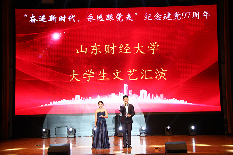 为深入学习贯彻习近平新时代中国特色社会主义思想及党的十九大精神,迎接建党97周年,丰富莱芜校区校园文化生活。“奋进新时代,永远跟党走”山东财经大学大学生文艺汇演于6月14日晚在莱芜校区嬴牟会堂精彩上演。莱芜市城投负责人、学校团委以及商经学院(莱芜校区管理办公室)的领导老师们与全院学生观看了本次演出。