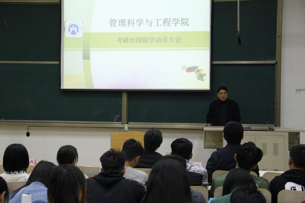 会上,学院团委书记何丽首先向大家介绍了2015级毕业生的考研情况,何丽指出,我院2019届毕业生国内外升学人数进一步增加,已达到110余人,进入国内名校的比率也大幅提升。接下来,马建华教授以2015级考研同学的详细数据为基础,为大家分析了跨院、跨校、跨专业考研的利弊,用数据说话,给同学们的志愿填报以指导;马建华还对学院的硕士学科专业的水平、招生政策、对学生的支持措施等进行了介绍。随后,副院长刘位龙以学院的两个合作项目为例,针对出国读研这一途径给同学们以指导。