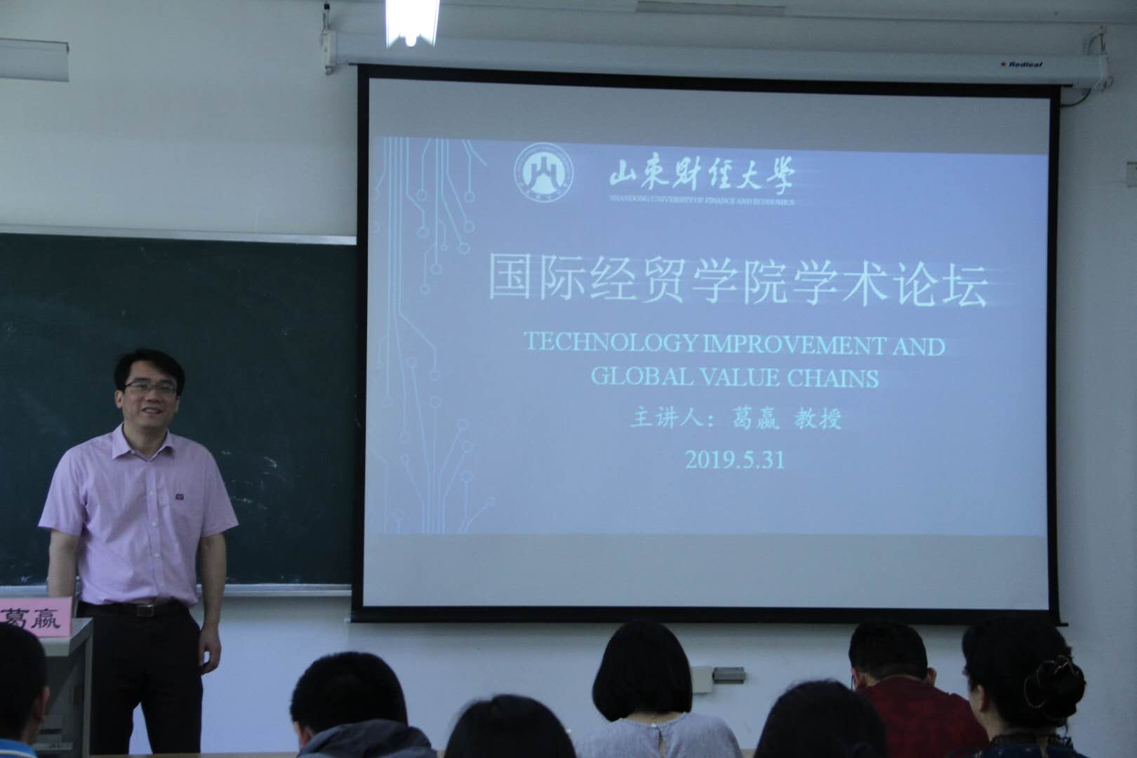 5月31日上午,国际经贸学院学术论坛在舜耕校区举行。浙江大学经济学院葛嬴教授应国际经贸学院邀请作Technology Improvement and Global Value Chains的主题报告。