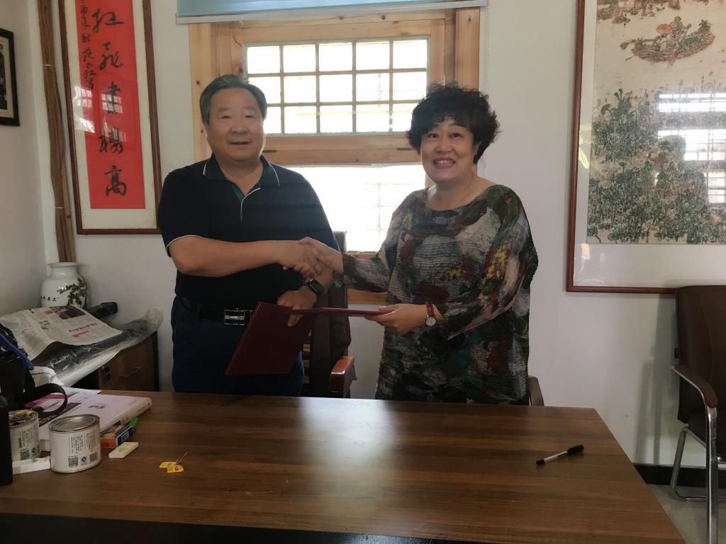 揭牌仪式上,济宁市原人大副主任、湖人书屋主人殷允岭先生与艺术学院党委书记杨春丽共同签定了共建社会实践基地合作协议,并与艺术学院院长范正红为实践基地揭牌。仪式后的座谈会上,双方表达了共同利用好实践基地这一平台,加强交流、互通有无、相互提携、合作共赢的美好愿景,并就下一步艺术学院师生到“湖人书屋”开展采风、研修、艺术创作等活动达成了初步意向。仪式结束后,艺术学院教师在书屋组织了小型笔会,现场挥毫泼墨,即兴创作了多幅精彩的书法绘画作品并捐赠给合作单位。