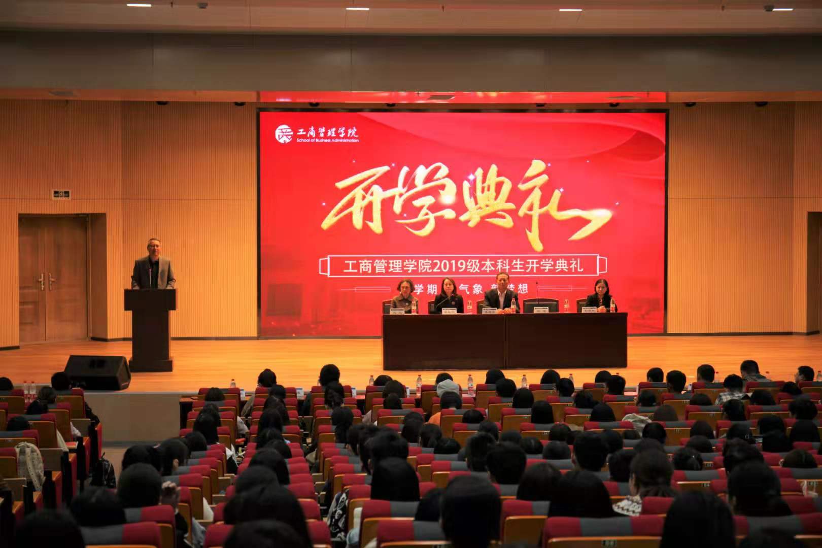 10月17日下午,工商管理学院2019级本科生开学典礼在圣井校区大学生活动中心隆重举行。党委书记李旭刚,院长刘军,党委副书记张红燕、彭艳红,副院长赵红,学院各系主任,教师代表,全体辅导员老师,学生代表及2019级全体新生出席典礼。典礼由张红燕主持。