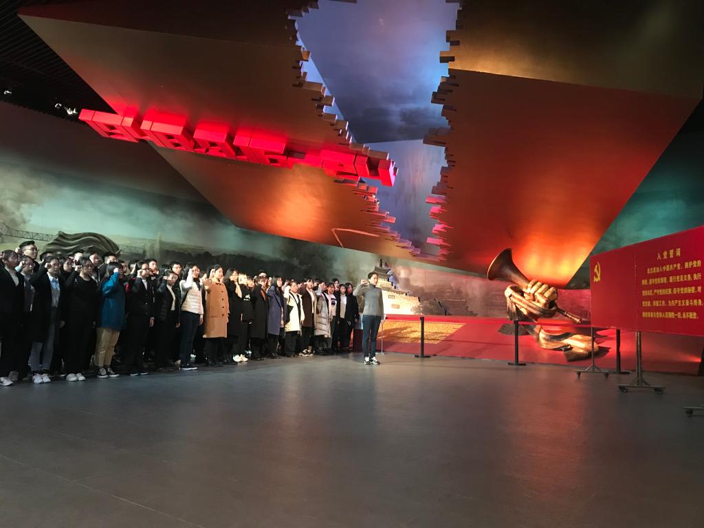 到达济南战役纪念馆后,大家首先参观了全景画馆,全景画馆使用幅宽巨大的画布勾勒出战场实景,进入全景画馆就如同真正目睹着血与火的战场,如临其境的视听感受使得大家为济南战役这场悲壮战斗而震撼、感慨。随后大家进入济南战役纪念馆展厅,展厅以济南战役历史脉络为主线,通过实物、图片、视频、雕塑等,向大家全面系统、形象生动地再现济南战役的光辉历程,在讲解员精彩详尽地讲解下,大家怀着崇敬的心情驻足观看一幅幅珍贵的照片、一份份翔实的史料、一件件丰富的实物,缅怀革命先烈,致敬红色岁月。最后,在杨雅琳老师的带领下,全体党员、预备党员、发展对象于济南战役纪念馆一楼面向党旗,庄严宣誓。誓词也时刻提醒着全体党员同志不忘初心,永葆中国共产党人的奋斗精神和赤子之心。