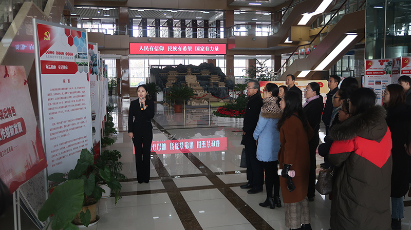 调研队一行参观了学院党校环境建设、党校文化,观摩了智慧党建平台建设和使用情况,参观了学院党委履行主责、完善机制、夯实基础、创新载体、打造品牌的党建工作成果展和“不忘初心、牢记使命”主题教育工作展。在图书馆馆长董桂花陪同下,听取了图书馆样板党支部“创新党建工作,服务立德树人”为主题的工作情况介绍,参观了古建筑构件收藏馆、初心书苑、中华优秀传统文化特藏室、校史馆及山东省广厦文化艺术研究中心等育人场所,在创艺工坊参观了建筑环境设计VR创艺工作室、雕刻创艺实训基地和学生的创意作品。