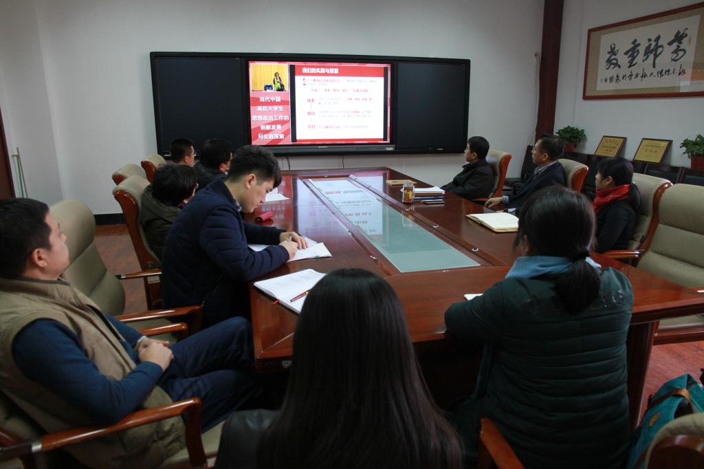 首先,参会人员集体收看学习了南京航天航空大学党委学生工作部部长王晖的报告,题为“当代中国高校大学生思想政治工作的创新发展与实践探索”。她详细介绍了南航围绕基础层、核心层和拓展层的十二项核心素质能力指标展开的大学生思想政治教育实践,他们在教育、教学实践方面的探索既有创新性又符合大学生发展的基本规律,使在场人员深受启发。