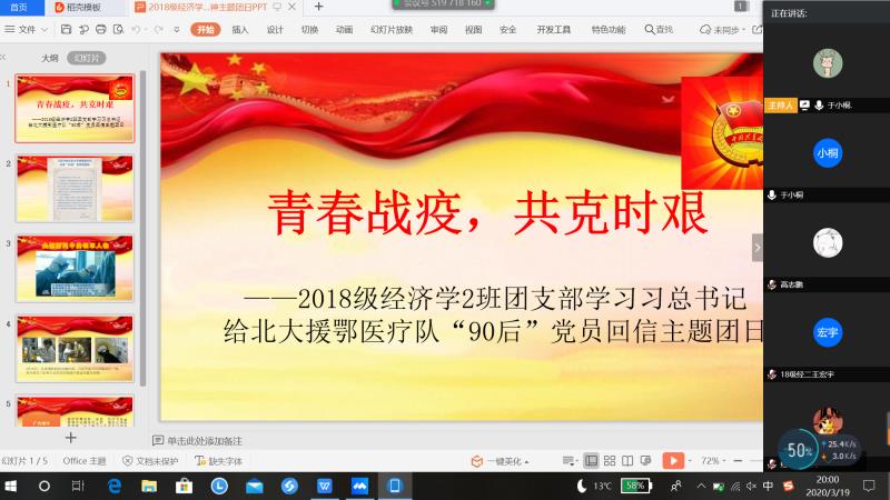 为深入学习贯彻习近平总书记给北京大学援鄂医疗队“90后”党员回信精神,广泛发动团员青年向在疫情防控一线担当奉献的青年学习,近日,经济学院各团支部依托网络平台开展学习习总书记给北京大学援鄂医疗队“90后”党员回信线上主题团日活动。