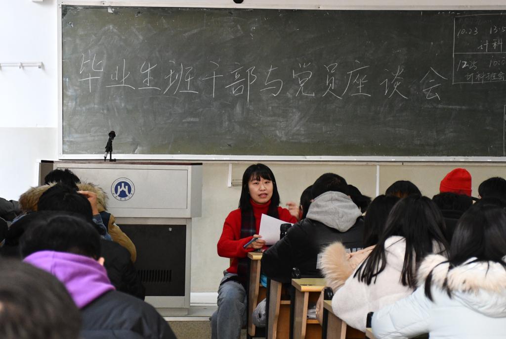 为给2017级考研学子加油打气,进一步强化毕业班学生干部和党员们的集体意识和责任意识,12月25日下午在1号教学楼405教室召开了计算机科学与技术学院2017级学生干部和党员座谈会。2017级辅导员老师张志萍、李珊珊以及来自2017级各班的主要学生干部和党员共67人参加了本次座谈。