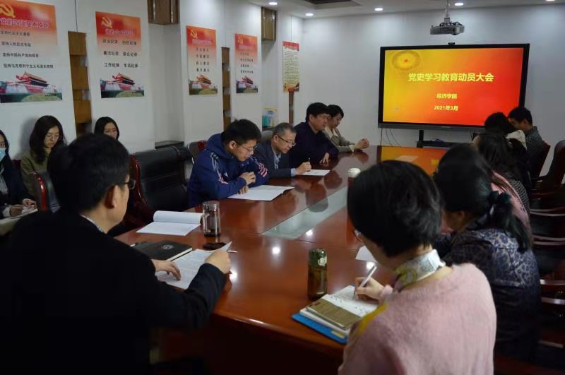 3月31日上午,为深入学习贯彻习近平总书记在党史学习教育动员大会上的重要讲话精神,认真落实学校党委工作要求,经济学院在舜耕校区办公楼1208会议室召开党史学习教育动员会,对学院的党史学习教育进行全面动员和部署。会议由院党委书记姜伟主持,学院各党支部书记及党员代表参加。