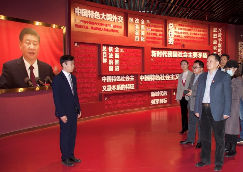 在参观现场,财政税务学院师生承担大量讲解工作。财政系主任赵宝廷以时代楷模黄大发同志为例,介绍了他的英雄模范事迹。2019级财政学学生雒鸾凤通过五次天安门大检阅的场面讲述了中国共产党近百年来不忘初心、牢记使命的光荣历程。并以钟南山、郭永怀两位人物的事迹具体阐释了共产党人担当道义、担当全局、担当领率、担当民生、担当危难的伟大担当精神。2020级税收学学生刘潇涵以国测一大队和陈觉赵云霄夫妇的事迹向大家展示了党员干部为了人民的事业,敢想、敢做、敢当的革命热情。原2019级财政学学生孙博洋通过为大家介绍谷文昌和李兰娟的事迹,回答了共产党人危难面前如何担当的问题。2020级财政学学生庞博宁向大家阐释了新时代共产党员担当历史重任应该具备什么样的能力和素质;同时谈到当代青年要跟随总书记的指导,用习近平新时代中国特色社会主义思想武装头脑,深刻领会新时代、新思想、新矛盾、新目标提出的新要求,不忘初心,牢记使命,为实现中华民族的伟大复兴而奋斗。