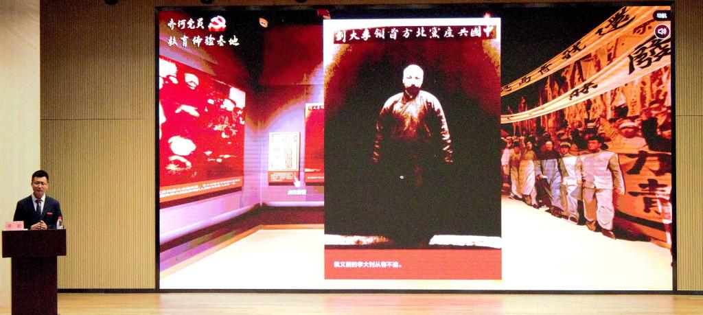 李毅老师使用VR技术,带领师生们对齐河党员教育体验基地进行参观,学习党史国史,传承红色基因。齐河党员教育体验基地的教育主题是“担当”,表现形式是“情景体验”,通过情景式的场景体验,旨在引导党员干部明确为什么要担当、担当什么、怎样担当的问题,以增强敢于担当的思想自觉和行动自觉。伴随着对师生们进行爱国主义教育的同时,大家了解到英雄模范们的担当精神,立志提高本领,担当起作为新时代中国人民的伟大责任。李毅老师指出,作为当代大学生,我们要以习近平总书记在学习党史动员大会上的重要讲话精神为指导,深刻领悟和把握开展党史学习教育的重大意义,紧扣“学史明理、学史增信、学史崇德、学史力行”的目标要求,高标准高质量开展党史学习教育,为喜迎百年华诞贡献一份青春力量。随后李毅老师以中国共产党百年历史为基础,并结合齐河党员教育体验基地的展示情况,向师生们讲解了中国共产党发展过程中经历的重大事件与重要意义,从而使师生们了解了中国共产党人这一百年来为中华民族伟大复兴所做的努力。通过李毅老师的讲解,师生们深入了解了中华民族从站起来、富起来到强起来的历史逻辑、理论逻辑和实践逻辑,深刻理解中国共产党为什么“能”、马克思主义为什么“行”、中国特色社会主义为什么“好”等重大命题的深刻社会意义。