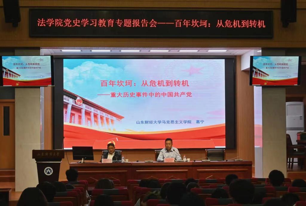 为庆祝中国共产党成立100周年,加强新党员党史学习教育。5月17日,我校党史学习教育宣讲团成员,马克思主义学院副教授葛宁为法学院师生作《百年坎坷:从危机到转机》专题报告。学院党委书记赵世民与100名入党积极分子在燕山校区第三报告厅聆听了报告。