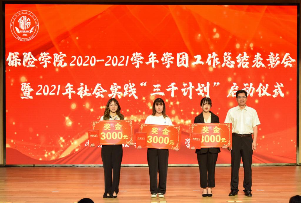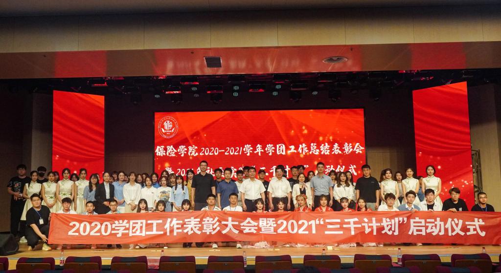 敦品励学,涵养优良学风;明辨笃行,领航青春梦想。5月20日下午两点,保险学院2020-2021学年学团工作总结表彰会暨2021年社会实践“三千计划”启动仪式在圣井校区大学生活动中心报告厅隆重召开,保险学院党委书记朱传武、院长葛永波、党委副书记张娟、学院学工办、学院团委全体老师以及获奖学生代表、圣井校区学生代表300余人出席此次会议。