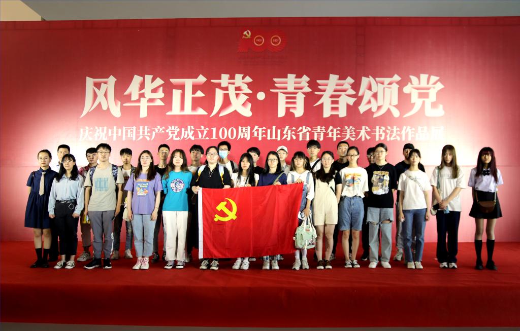 为庆祝中国共产党成立100周年,讴歌伟大的党100年来取得的伟大成就,深入推进党史学习教育入脑入心。5月29日上午,30名学生党员代表前往山东省美术馆参观“ ‘风华正茂•青春颂党’ 庆祝中国共产党成立100周年山东省青年美术书法作品展”。