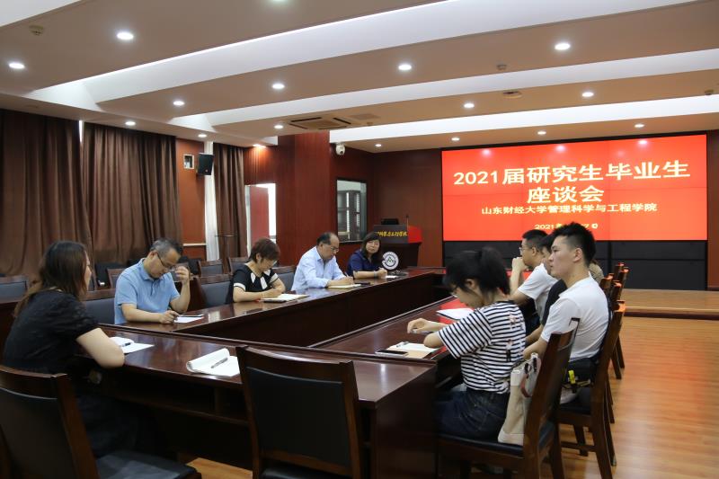 6月17日上午,管理科学与工程学院2021届研究生毕业生座谈会召开。会议由学院党委副书记崔东峰主持,副院长马建华、博士生导师代表关洪军、硕士生导师代表陈爱玲、研究生辅导员何丽、教学秘书王娅姿及学院2021届部分博士、硕士毕业生参加了座谈会。