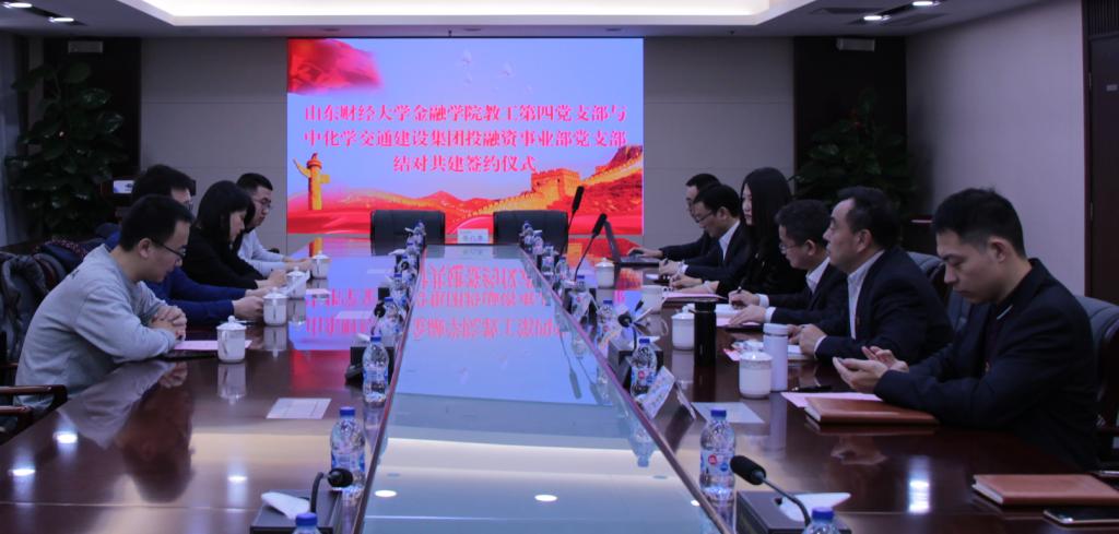 近日,金融学院教工第四党支部与中化学交通集团有限公司投融资事业部党支部在中化学交通集团有限公司举行党支部共建签约座谈会。金融学院副院长冯玉梅、中化学交通建设集团投融资事业部党支部书记欧阳力胜、教工第四党支部书记陈彬彬和部分党员代表,和全体党员参加座谈会。