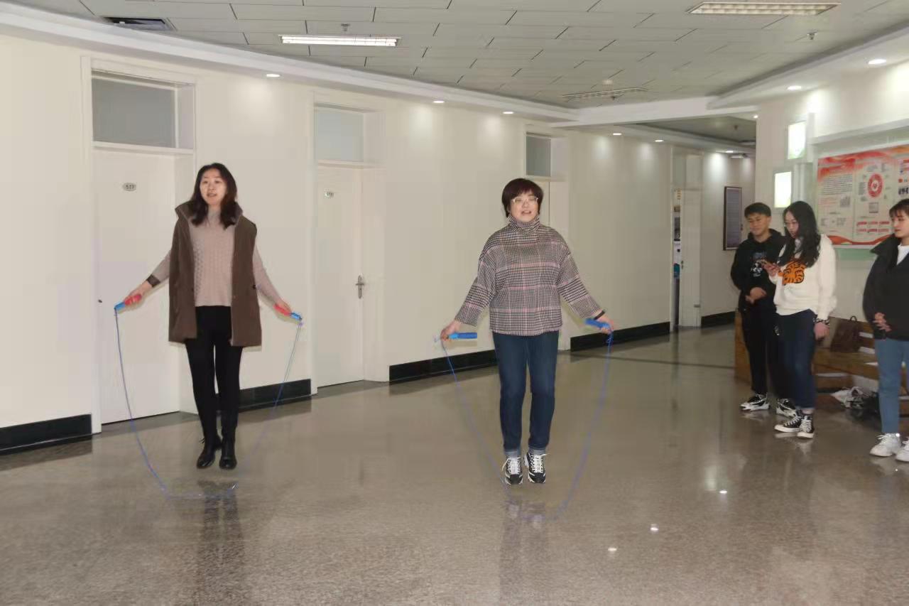 为认真贯彻全民健身国家战略,丰富教职工文化生活,进一步弘扬“巾帼不让须眉”的拼搏精神,在“三八”妇女节到来之际,管理科学与工程学院于3月2、3日下午开展庆“三八”趣味跳绳活动,学院全体女教职工积极参与。