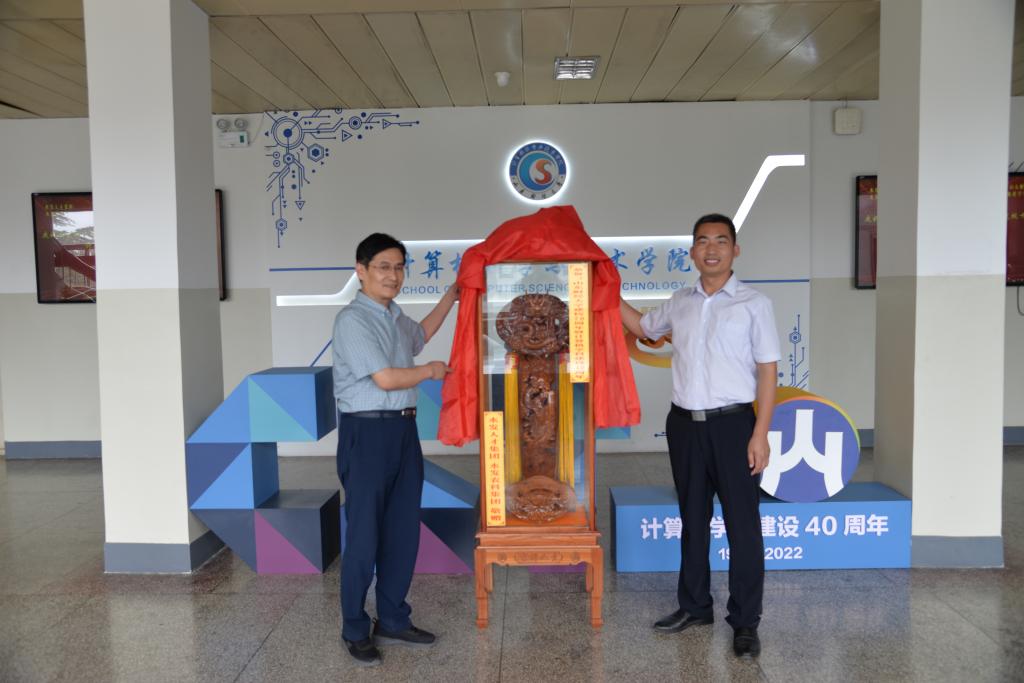 6月8日下午,计算机科学与技术学院在燕山校区一号楼四层大厅举行了校友捐赠仪式。2003级校友王恒国一行为庆祝母校七十周年暨合并建校十周年、计算机学科建设40周年,代表水发人才集团、水发农科投资集团向学院捐赠木雕如意摆件,表达了对母校的美好祝福。计算机科学与技术学院院长韩慧健、副书记吕海霞、李云枝以及办公室人员参加捐赠仪式。