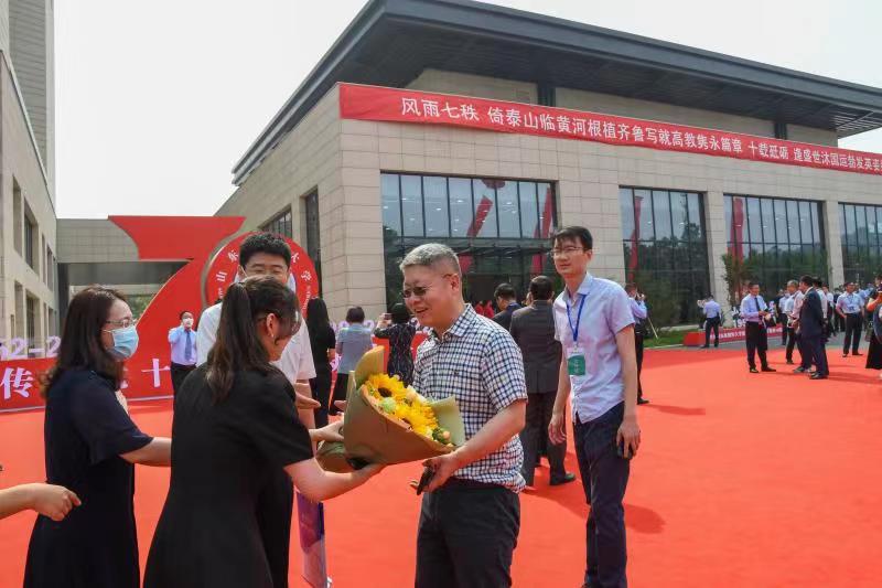 山财大建校七十周年暨合并建校十周年庆祝大会于6月9日隆重举行,91级校友刘军政受邀出席庆典活动。在庆典入口的校庆会标处,管理科学与工程学院学生代表李腾、高嘉蔚代表全体在校生向学长送上鲜花,对学长通过努力奋斗取得的成就表示敬佩,表示要以学长为榜样,努力学习专业知识、提高综合素质,将来成为像学长一样有成就的人,为社会增光、为母校添彩。