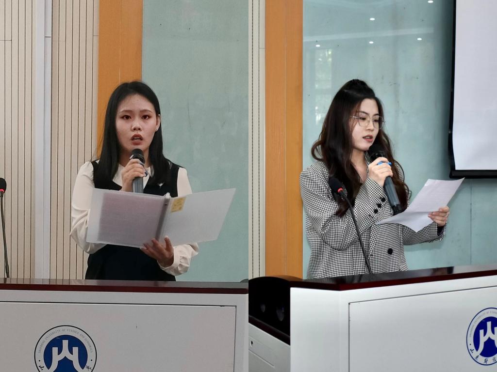 在校生代表2020级财政学硕士房文祎同学结合自身经验,和新生们分享了心得体会,提议要不断探究“未知领域”、要多读“无字之书”、要重视“团队协作”。新生代表2022级税务专硕胡华婧同学表示,认知决定起点,创新决定终点,情怀决定高度。