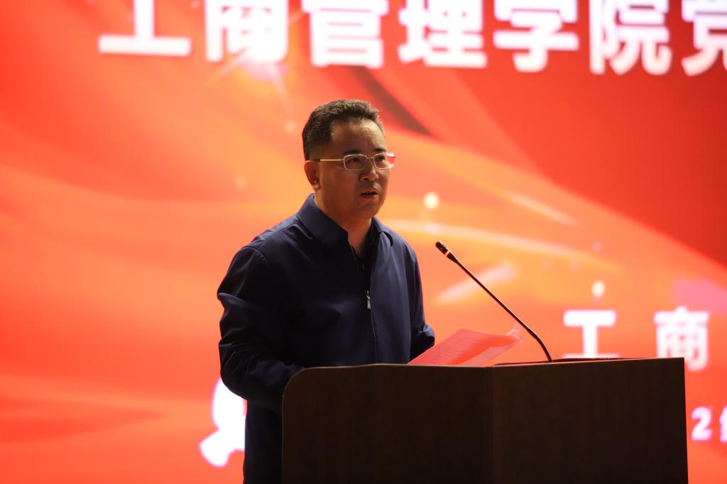 苏昕介绍了学院的历史沿革、文化底蕴、学科发展、人才培养、师资力量和时代使命。教育引导同学们要有大格局,主动承担时代所赋予的历史使命,为中国经济贡献管理智慧;要有厚基础,要坚定专业信仰,扎实掌握管理学科专业知识,掌握科学思维方式和运用知识的能力;要有高情商,要学会主动沟通,要积极参加创新竞赛、社会实践,在协作中担当作为,在集体中涵养品格;要有强身心,要关注自己的身心健康,培养体育志趣,积极参加校园文化活动。希望同学们去探索、去求知、去开拓,努力争做全面发展的新时代工商管理英才。