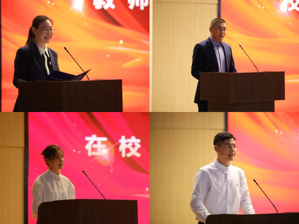 刘侠强调了自律、奋斗的重要性,以及思辨、实践的必要性,勉励同学们早日设定人生目标,持续专心专注专业发展,才能有所成长,有所收获。王卫光以选择和态度为主线,分享了自己的成长经历,他强调每一个选择背后都有态度的影响,建议学弟学妹们要克制生活中的负能量,厚积才能薄发,要珍惜在大学的学习时光,努力学习。在校生代表李晨阳和新生代表傅圣杰分别发言。