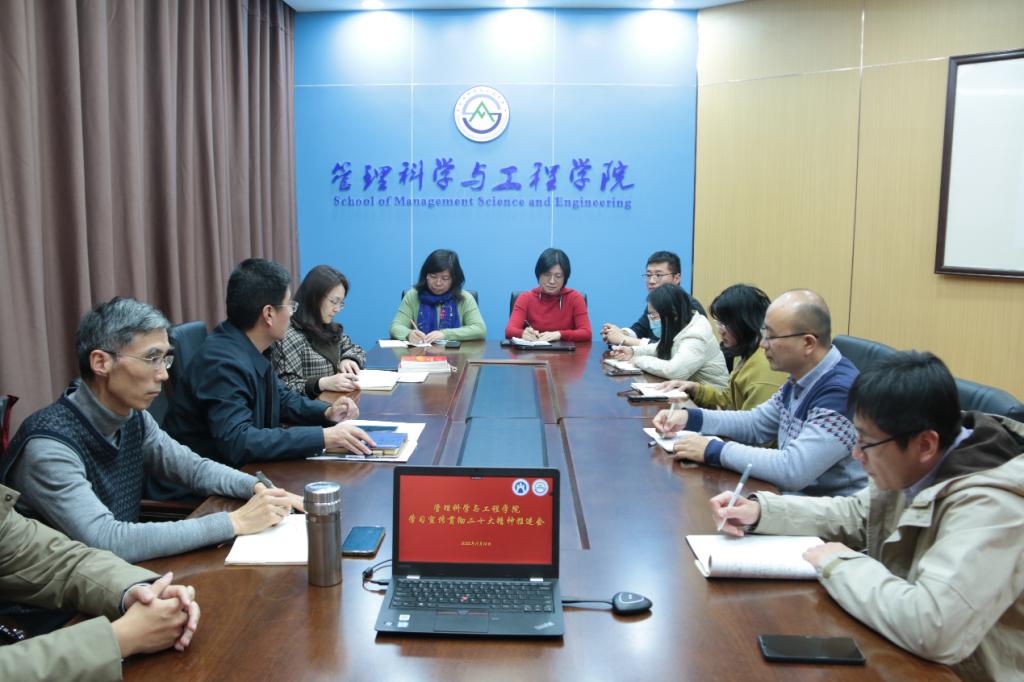 11月14日下午,管理科学与工程学院在逸夫楼514召开专题会议,研究部署深入推进学习宣传贯彻党的二十大精神相关工作。院党委书记徐世星,各系主任、各党支部书记出席会议,党委副书记朱翠珍主持。