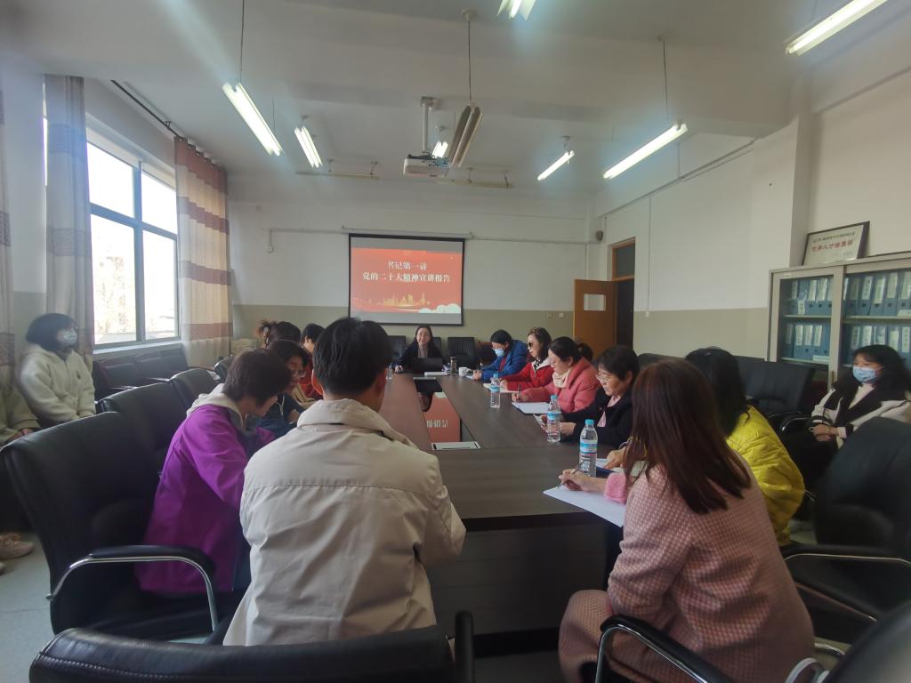 3月2日下午,公共外语教学部于燕山校区1304会议室组织了深入学习宣传党的二十大精神专题宣讲活动,启动了“书记第一讲”,公共外语教学部党委书记杜丽娜宣讲了党的二十大精神。各支部书记、教研室主任及教师代表、学生党员参加了此次报告会。